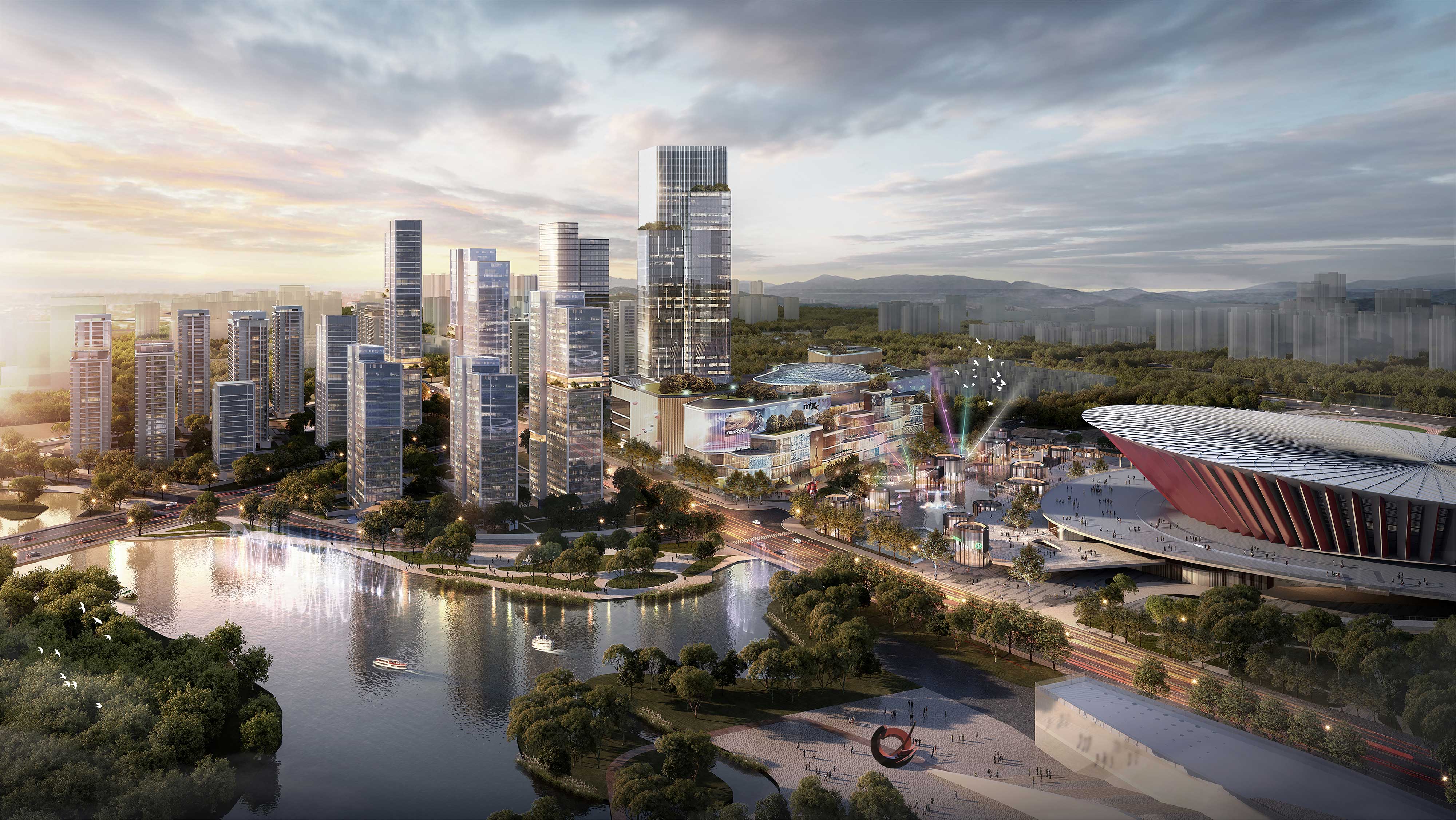 该项目总用地面积约190387㎡,主要拟建物包括办公塔楼一座(39层,建筑高度约140米)、住宅(14-26层,地上42-78米,共12栋),共计13个单体。